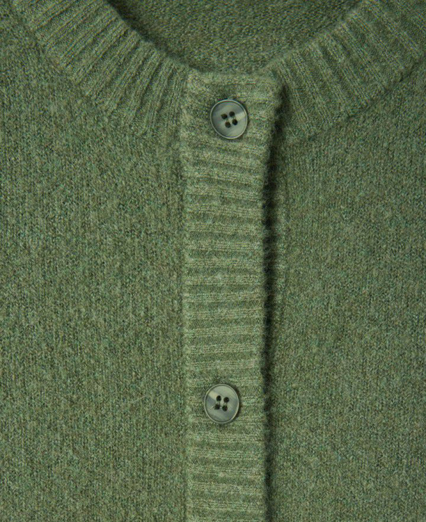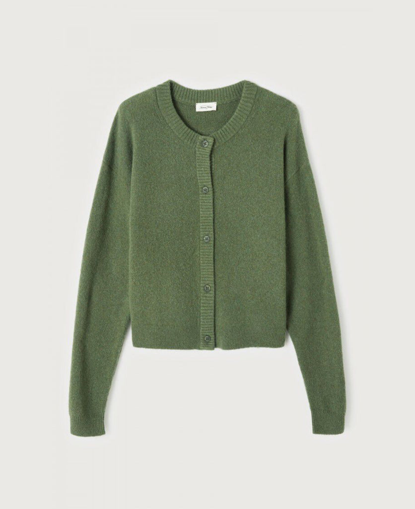 The Dam Round Neck Cardigan by American Vintage features a round collar with button up design, long sleeves and is slightly cropped. Crafted from a Wool Blend, makes this cardigan incredibly soft to touch.