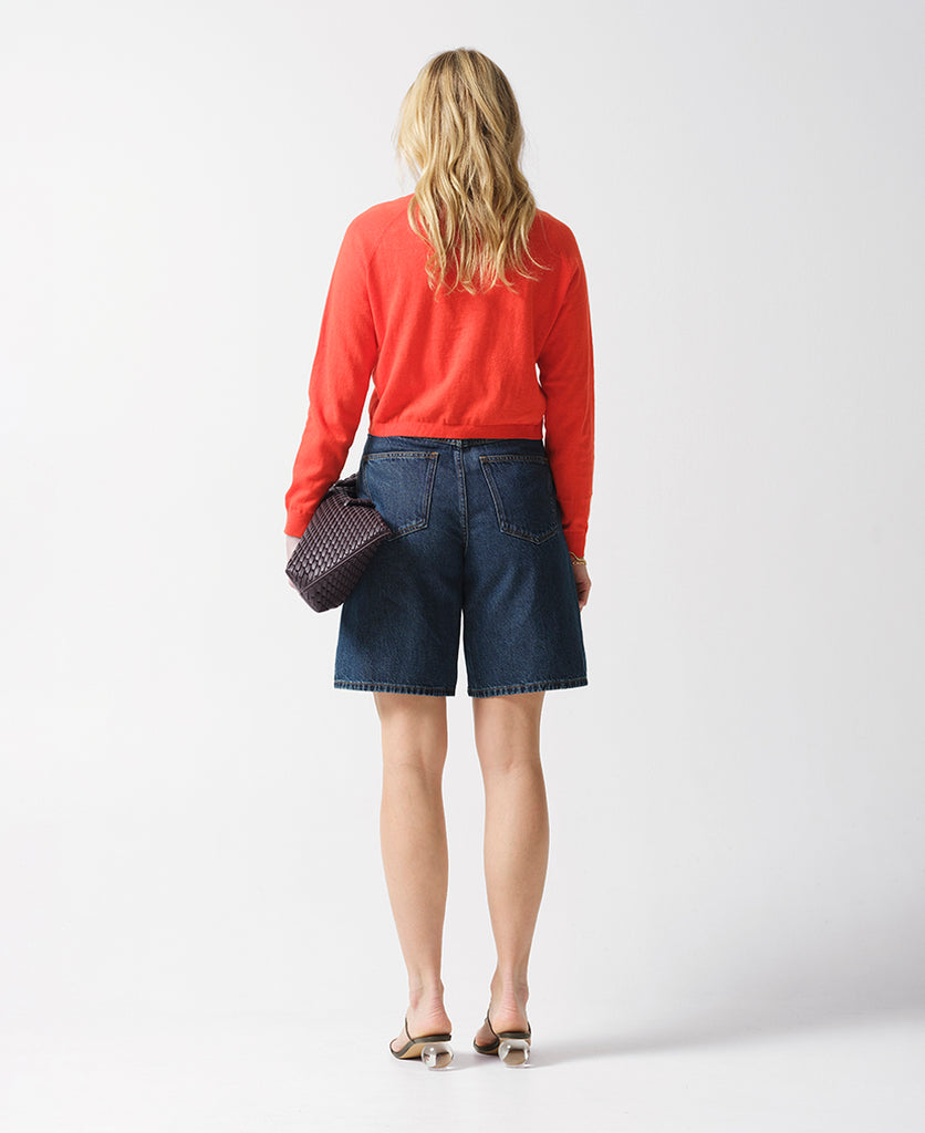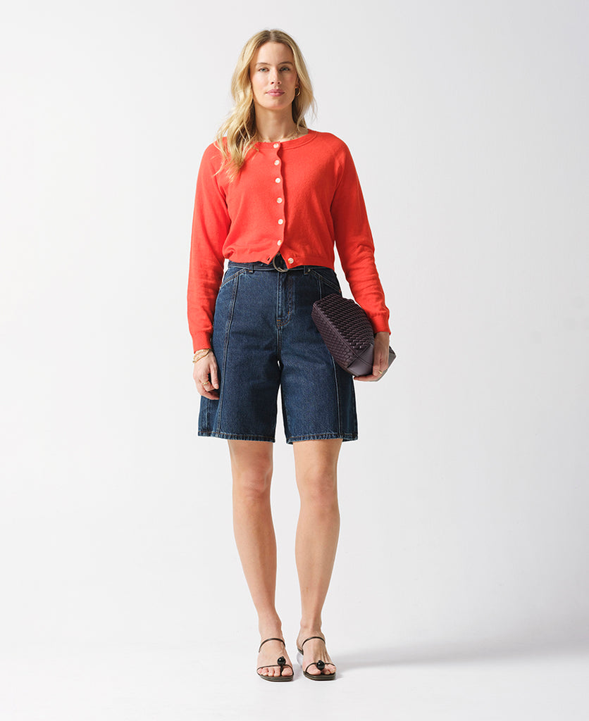 A modern layer with timeless appeal, the Kasuko Cardigan brings effortless polish to everyday dressing. Designed in a boxy cropped silhouette, this versatile knit is finished with a classic crew neckline and a button-down front for easy styling. Available in rich Pomodori red and a refined Navy, it’s the perfect piece to slip on with denim or drape over dresses when the temperature cools.