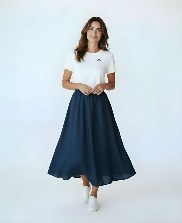 Meet the Penelope Umbrella T-Shirt by Ecology. A playful take on a wardrobe classic. Crafted from premium cotton, it offers a soft, breathable feel with a slightly cropped length that pairs perfectly with high-waisted jeans, skirts, or tailored pants.