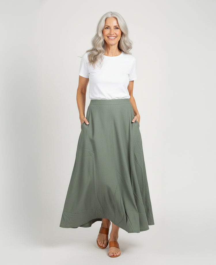 Slip into effortless elegance with the Tilly Skirt. This maxi silhouette features a breathable cotton construction that moves with you throughout the day, while practical pockets keep your essentials within reach. The convenient pull-on design eliminates fuss, and the complete lining ensures comfort and confidence with every wear. Timeless style meets everyday functionality.