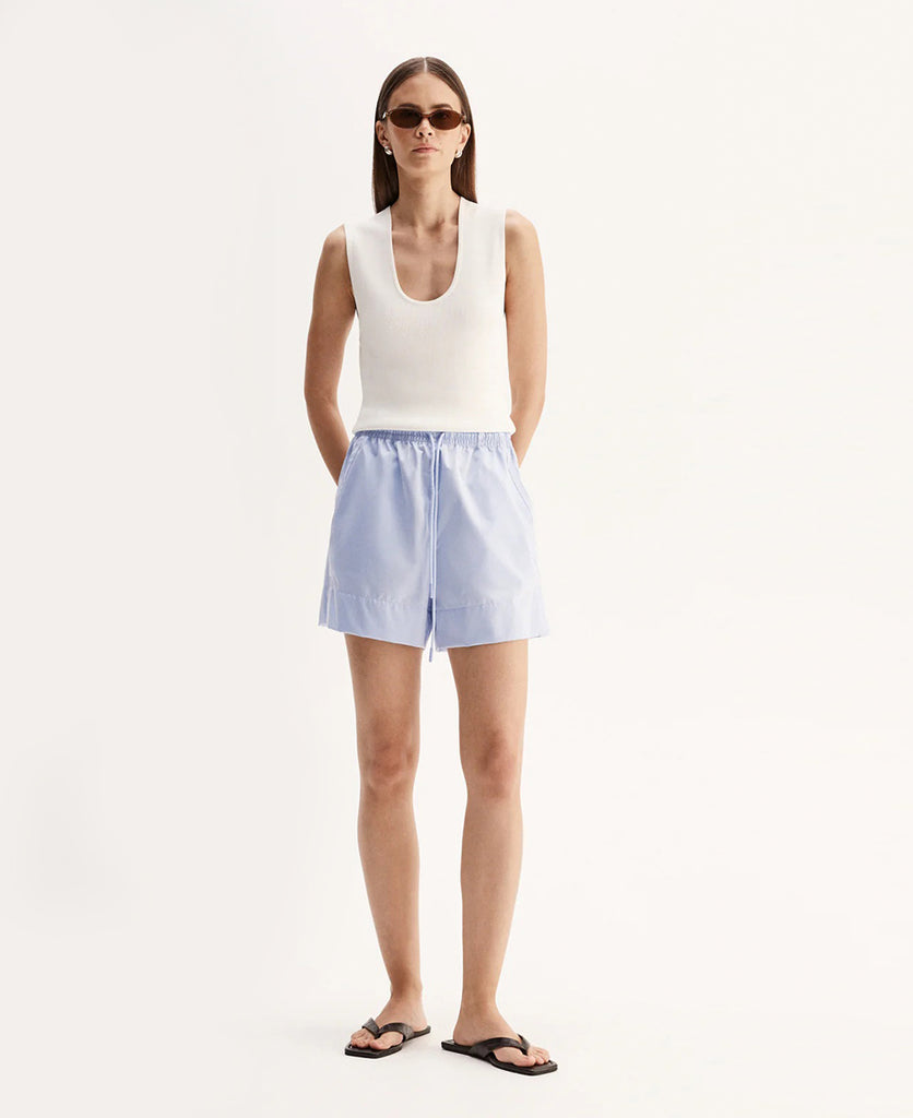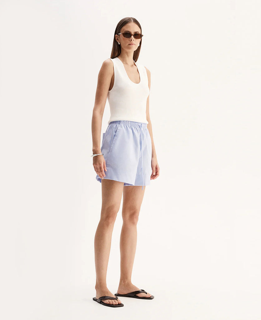 The Austin Short is a fresh summer wardrobe staple made of 100% cotton with a relaxed look and feel. These shorts have an elastic waistband with drawstring and functional side and back pockets. Wear with the matching Austin Shirt.