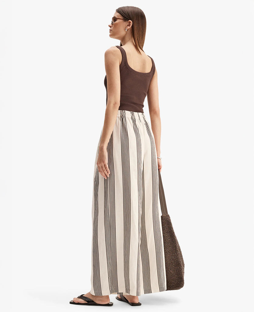Bringing signature refined styling to casual outfitting, pieces like the Milo Stripe Pant by Elka Collective become a summer essential. Crafted in a stripe pattern, these pants are ideal for relaxed weekend styling with core basics and relaxed fit tees. These pants are cut to a high-rise waist with a full length wide leg, elastic waistband and drawstring tie.