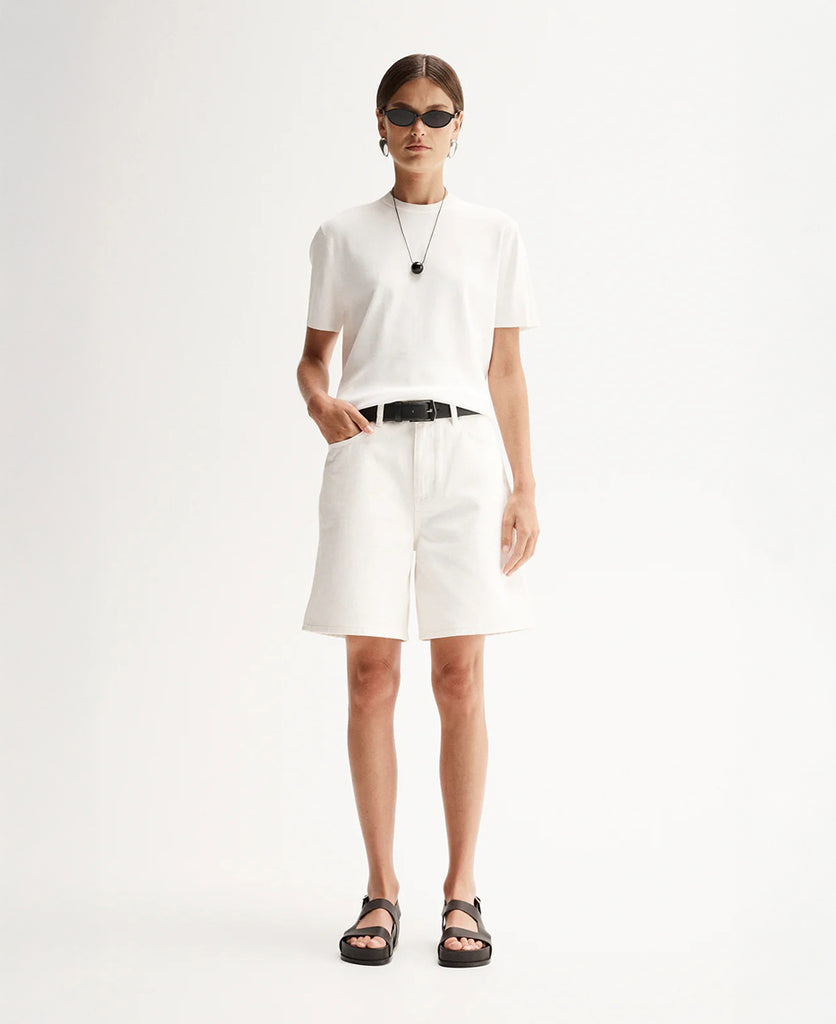 The Wilbour Top is made of a soft jersey knit fabric, designed to be lightweight and breathable for everyday comfort. Cut to a relaxed fit, this t-shirt features a round neckline, short sleeve, and regular length silhouette. Style with soft tailoring for a pared back office look or crisp denim for weekend casual.