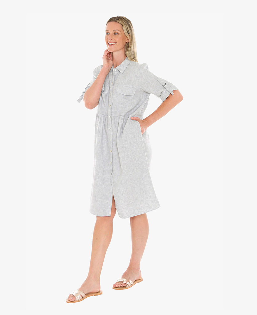 Get ready for effortless warm-weather fashion with the D-Ring Dress by Flax & Seed. Made from breathable linen, this casual staple offers all-day comfort with a touch of hic thanks to its unique D-ring sleeve detail. Perfect for a relaxed and stylish look, this dress is a must-have for your wardrobe.