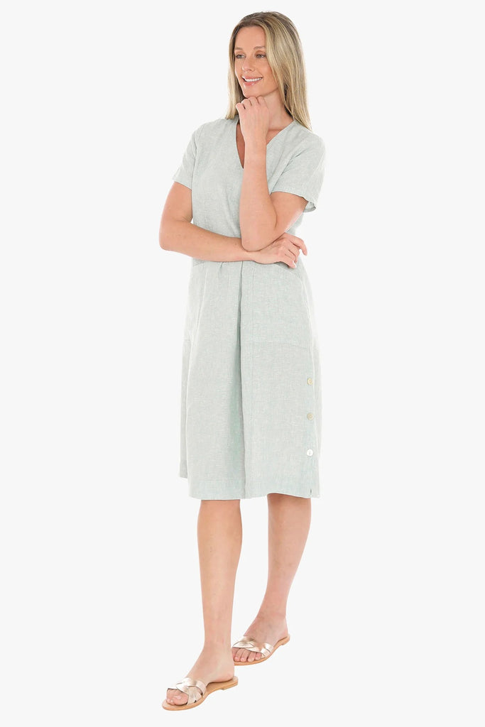 The Side Button Dress by Flax & Seed is a casual essential, crafted from breathable linen for a lightweight, effortless feel. Designed with a relaxed silhouette and side button detailing, it's perfect for easy, everyday styling with a touch of understated charm.