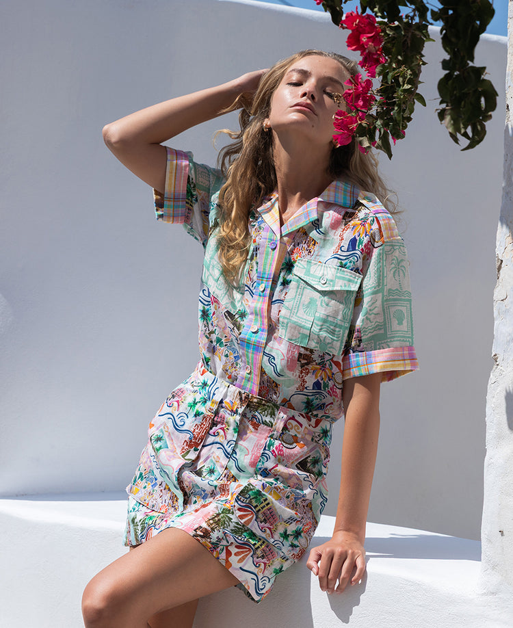 Meet the Evelyn Shirt by Kachel, your perfect summer essential. It features a classic button-down design with a shirt collar, a functional placket, and short batwing sleeves with rolled cuffs. Crafted from lightweight fabric, it boasts vibrant summer prints.
