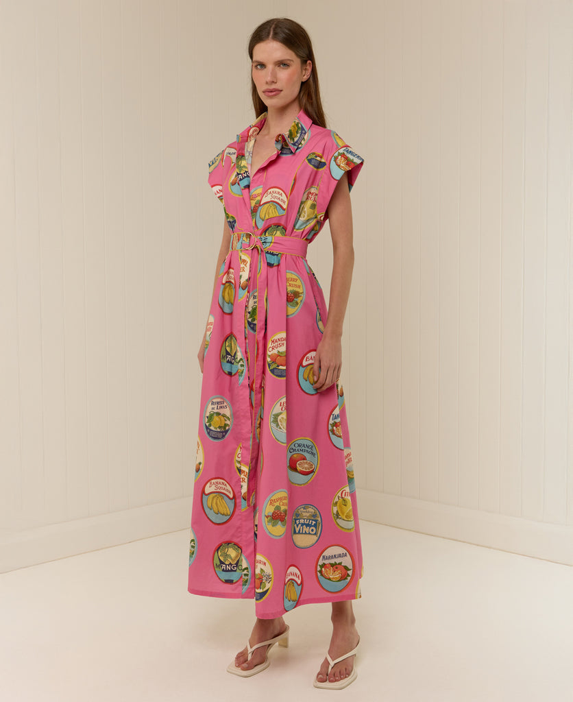 The Siren Dress is crafted from a premium Cotton Poplin in an exclusive La Fruta print. Featuring a structured point collar and adjustable D-ring belt, the Siren Dress offers a crisp silhouette, finished with a western-style yoke and contrast piping for a relaxed yet elevated look. Please refer to our size and fit guide for further fit details.