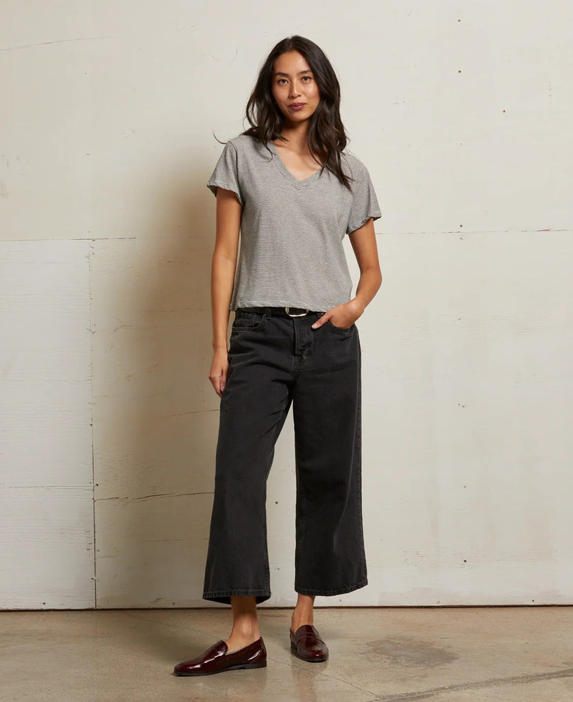 Replenish your roster of essentials with foundation pieces like the Hendrix Stripe V-Neck Tee. Made from crispy cotton, it features a perfectly slightly oversized silhouette and a flattering v-neck, ideal for showing off your favourite dainty pendant. Now available in Poppy Red, a bold, energetic hue that adds a vibrant pop of colour to your everyday rotation. The modern wardrobe is not complete without a v-neck tee; style yours tucked into jeans or elevate your look with a blazer—your perfect go-to essential tee.