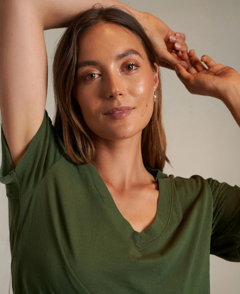 Replenish your roster of essentials with foundation pieces like the Hendrix V-Neck Tee. Made from crispy cotton, it features a perfectly slightly oversized silhouette and a flattering v-neck, ideal for showing off your favourite dainty pendant. Now available in Poppy Red, a bold, energetic hue that adds a vibrant pop of colour to your everyday rotation. The modern wardrobe is not complete without a v-neck tee; style yours tucked into jeans or elevate your look with a blazer—your perfect go-to essential tee.