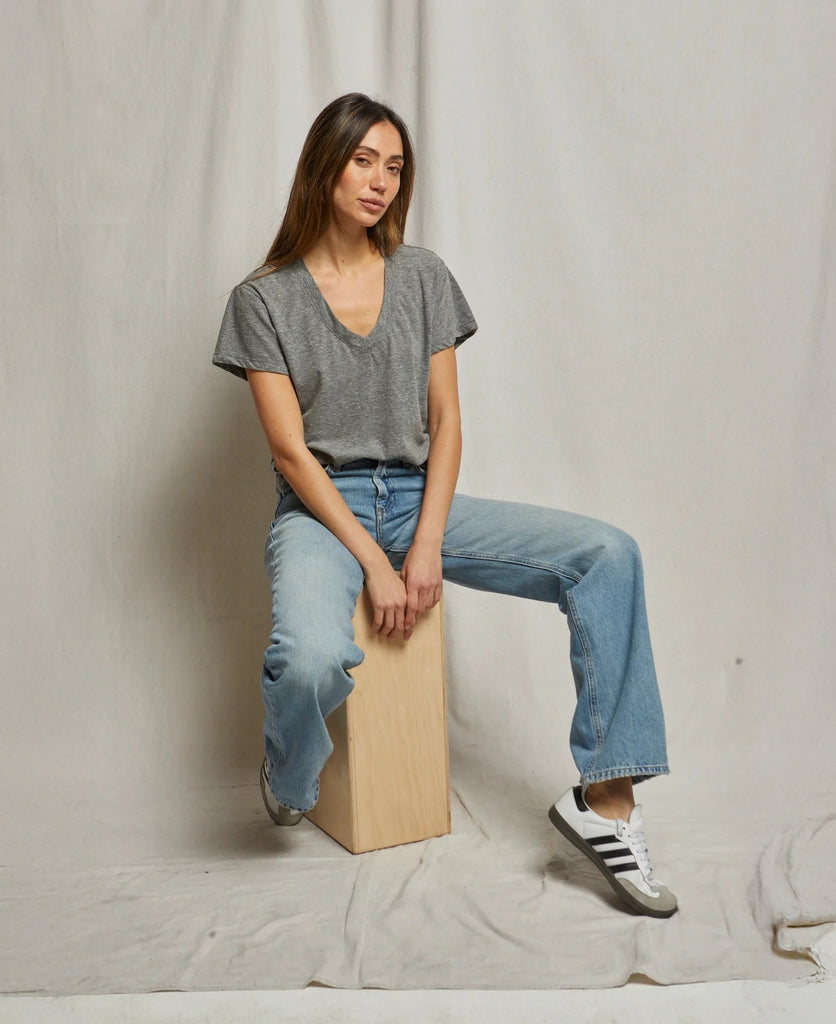 Replenish your roster of essentials with foundation pieces like the Hendrix V-Neck Tee. Made from crispy cotton, it features a perfectly slightly oversized silhouette and a flattering v-neck, ideal for showing off your favourite dainty pendant. Now available in Poppy Red, a bold, energetic hue that adds a vibrant pop of colour to your everyday rotation. The modern wardrobe is not complete without a v-neck tee; style yours tucked into jeans or elevate your look with a blazer—your perfect go-to essential tee.