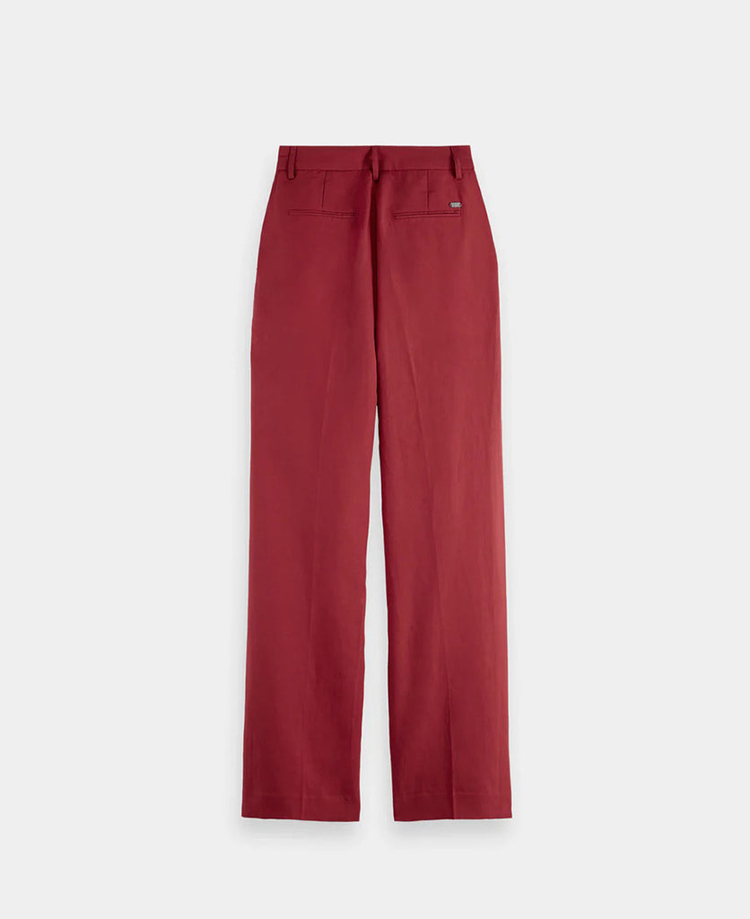 A wardrobe essential, the Edie High Rise Pants by Scotch & Soda feature a flattering high-rise and wide-leg silhouette with a tailored fit. Perfectly balancing comfort and sophistication, these versatile pants transition seamlessly from daytime meetings to evening outings. The striking Roadside Red hue adds a bold, modern touch to any outfit.