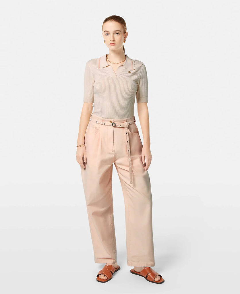 The Rib Polo Neck Pullover by Scotch & Soda in Soft Ice is a versatile knit that blends comfort with sophistication. Designed with elbow-length sleeves, a flattering ribbed texture, and a delicate scalloped collar, this short-sleeve pullover is perfect for both layering under blazers and wearing as a polished standalone top. The ribbed knit adds subtle warmth and definition, while the scalloped detail lends a feminine, elevated touch, making it an effortless staple for any wardrobe.