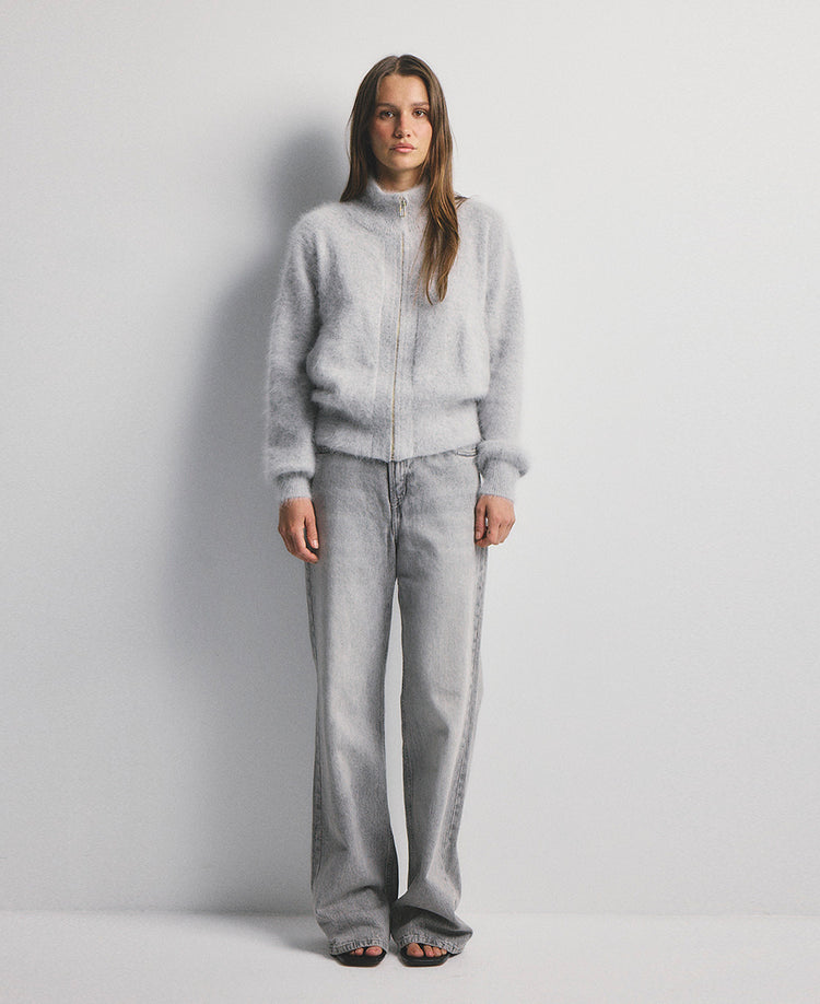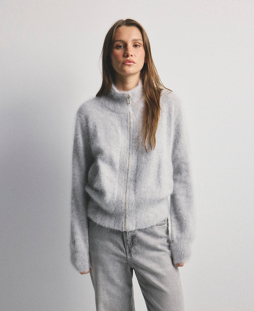 The Felix Zip Cardigan in Light Grey combines effortless style with everyday versatility. Crafted from luxurious fabric, this relaxed-fit layering essential features a high neckline, long sleeves, and premium gold hardware for a refined finish. Ribbed cuffs and hem provide a polished look that pairs seamlessly with any wardrobe. Perfect for layering or wearing solo, this cardigan delivers both comfort and sophistication.